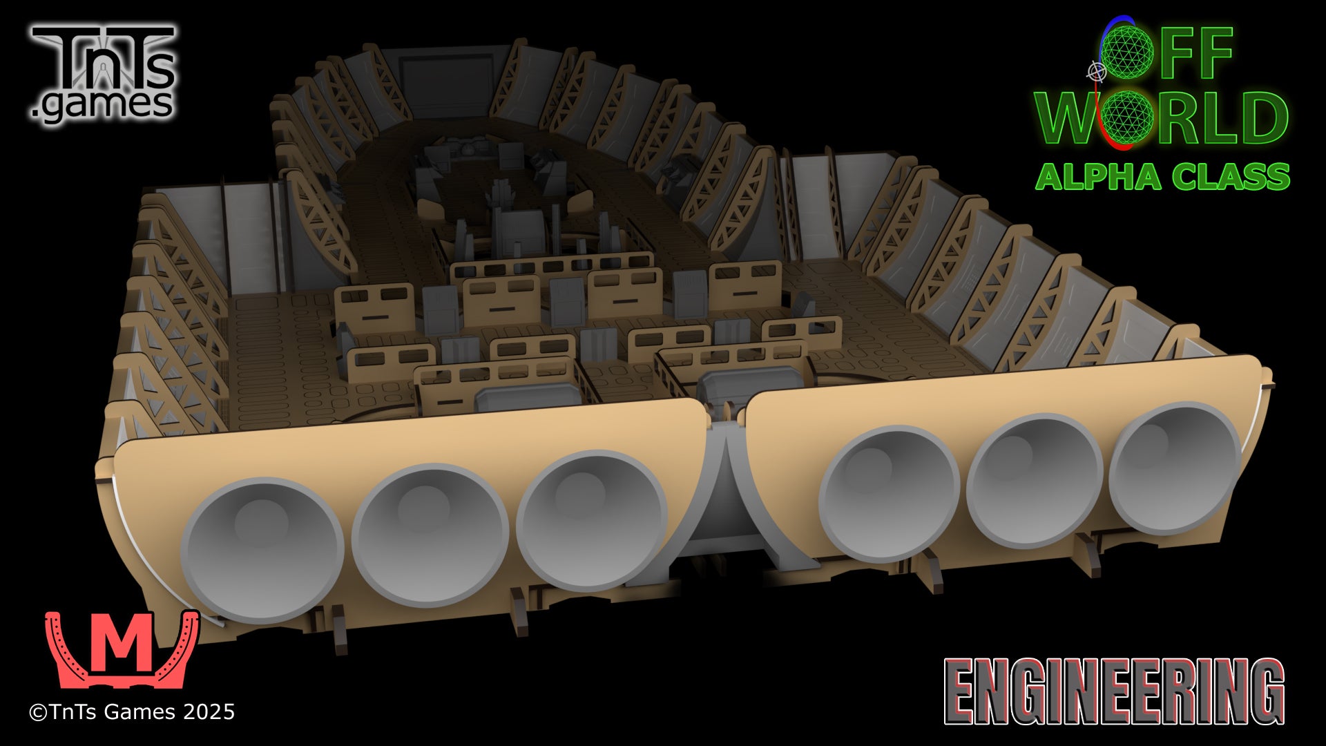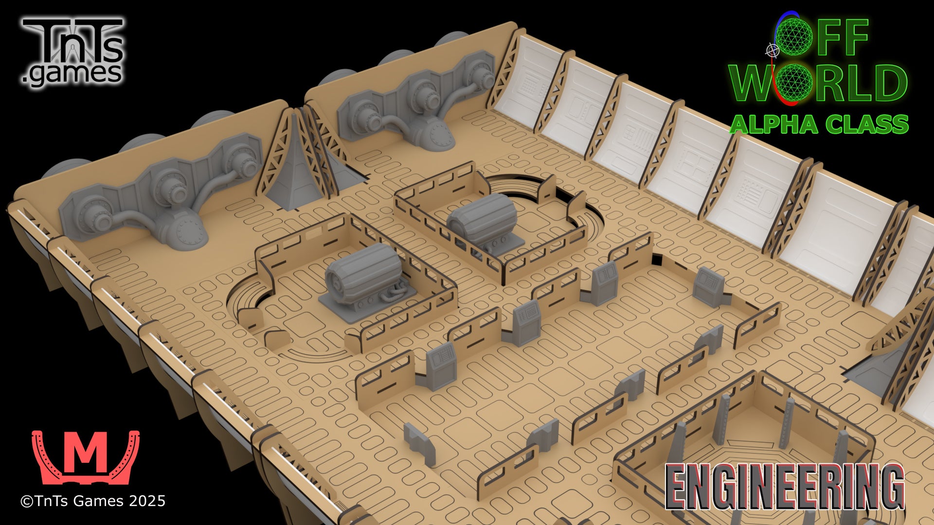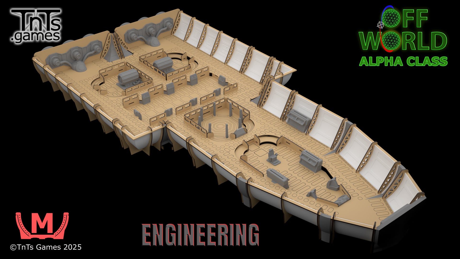 2x 300mm Tunnels 4x 150mm Tunnels 6x 75mm Tunnels 4x Inner corners 4x Outer corners 1 x Alpha bridge kit 1x nose floor 4x 15deg wedges 1x Room A Comms 1x Room B Generators 1x Room C Teleport 2x rear triple engines 1x Front screen 2x Side consoles