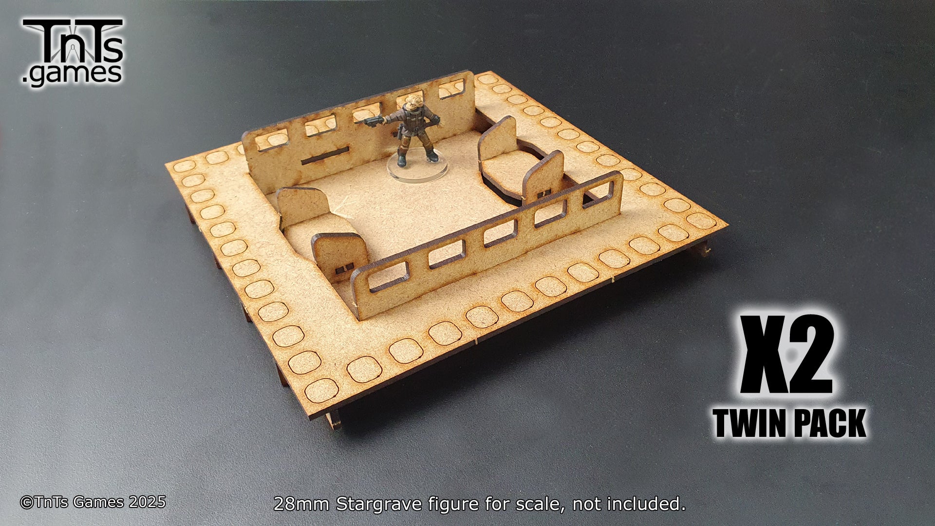 This set contains 2 - 150mm modular room tiles. With the more generic tiles you can swap the walls around to create additional variation. Allowing you to mix and match your walls, windows and doors between sets.