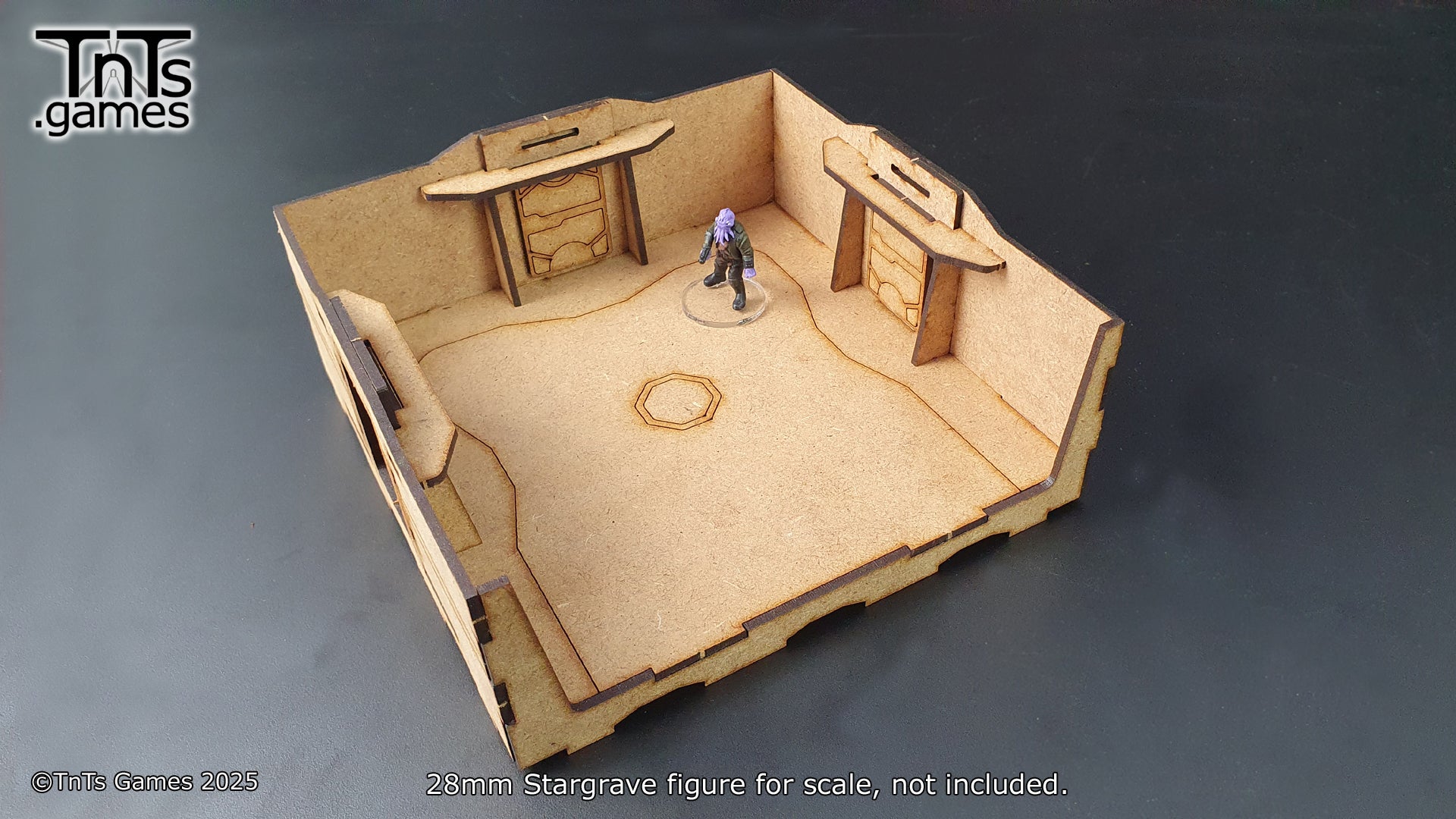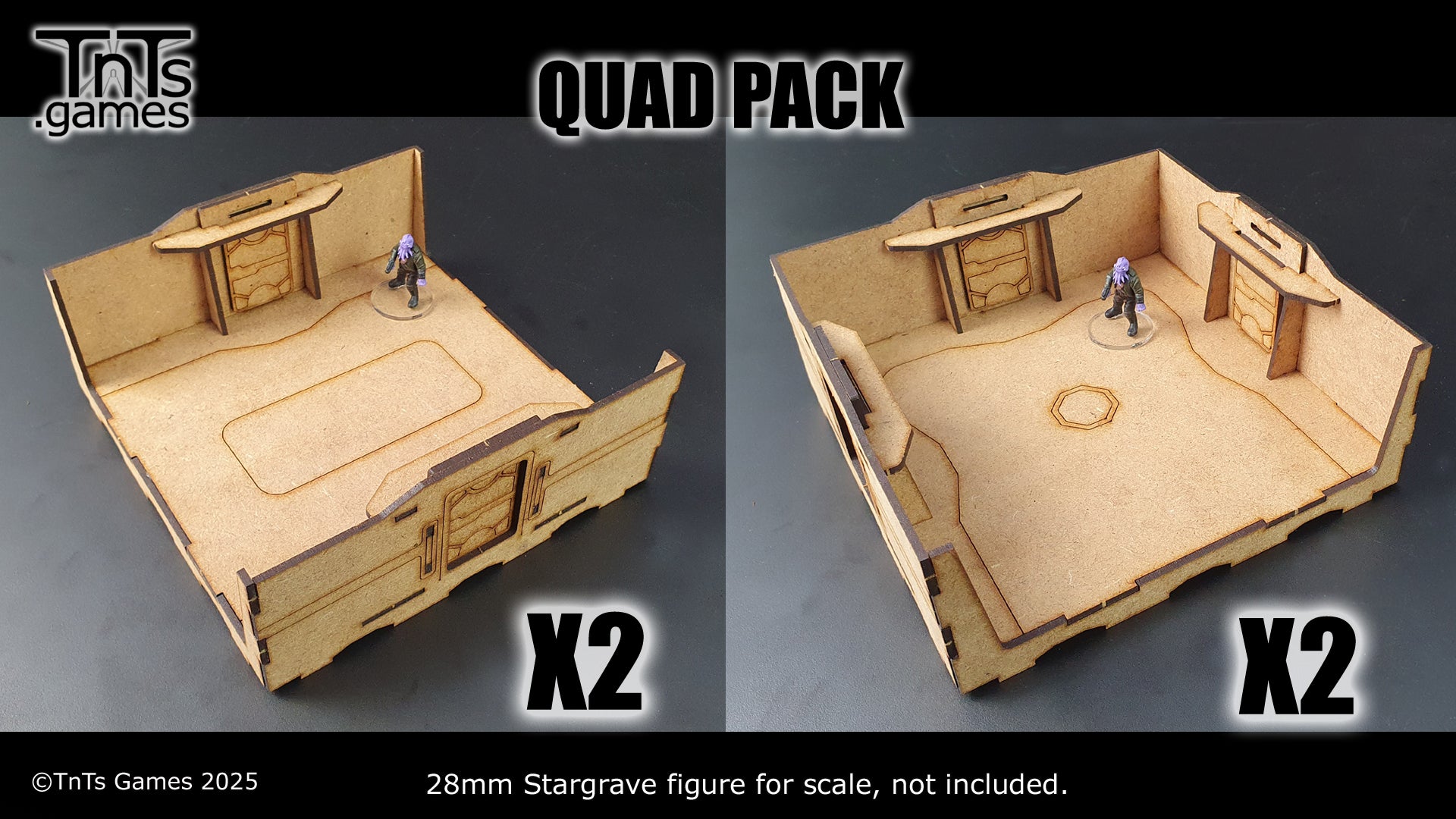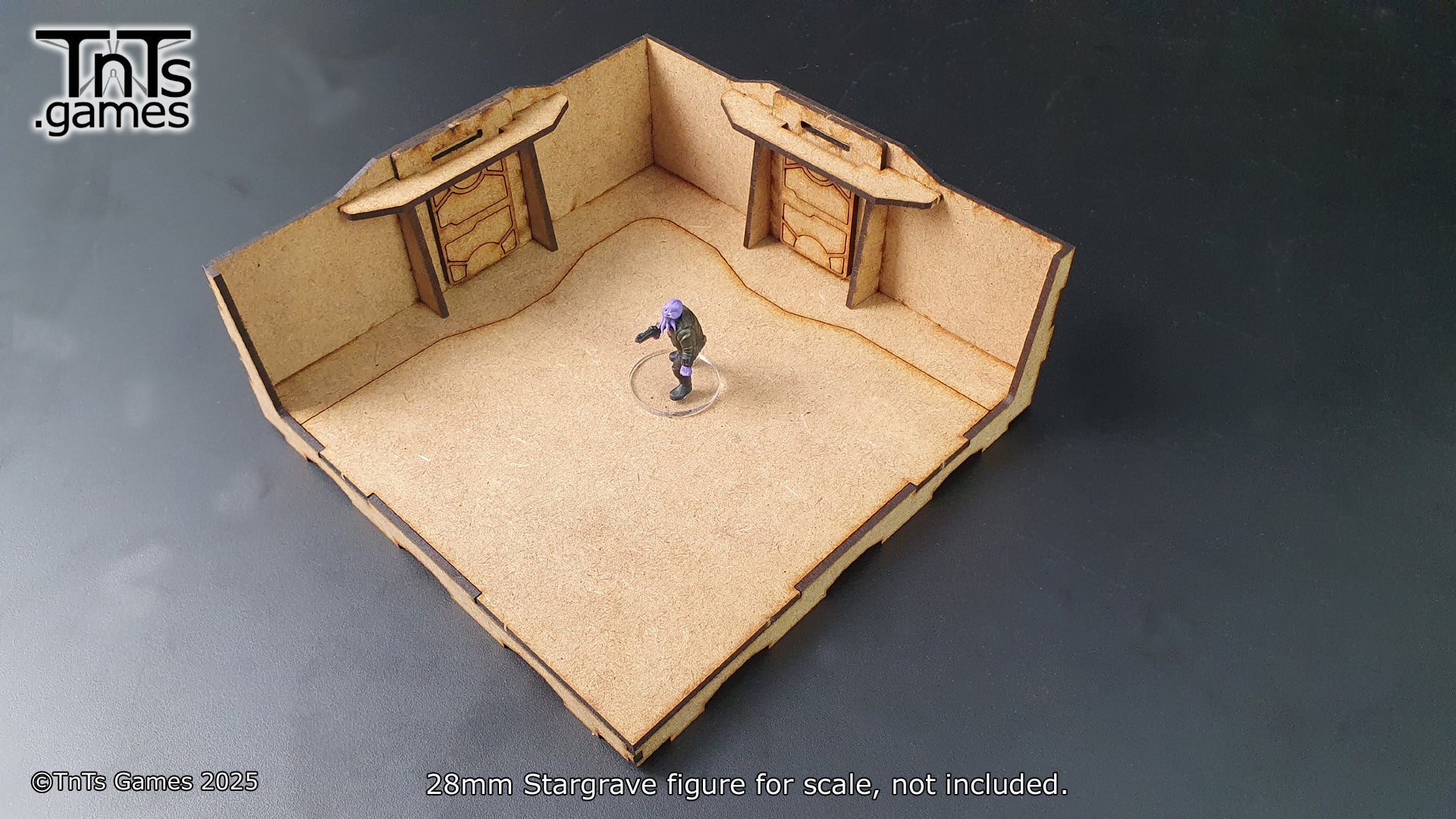 This set contains 4 - 150mm modular room tiles. With the more generic tiles you can swap the walls around to create additional variation. Allowing you to mix and match your walls, windows and doors between sets.