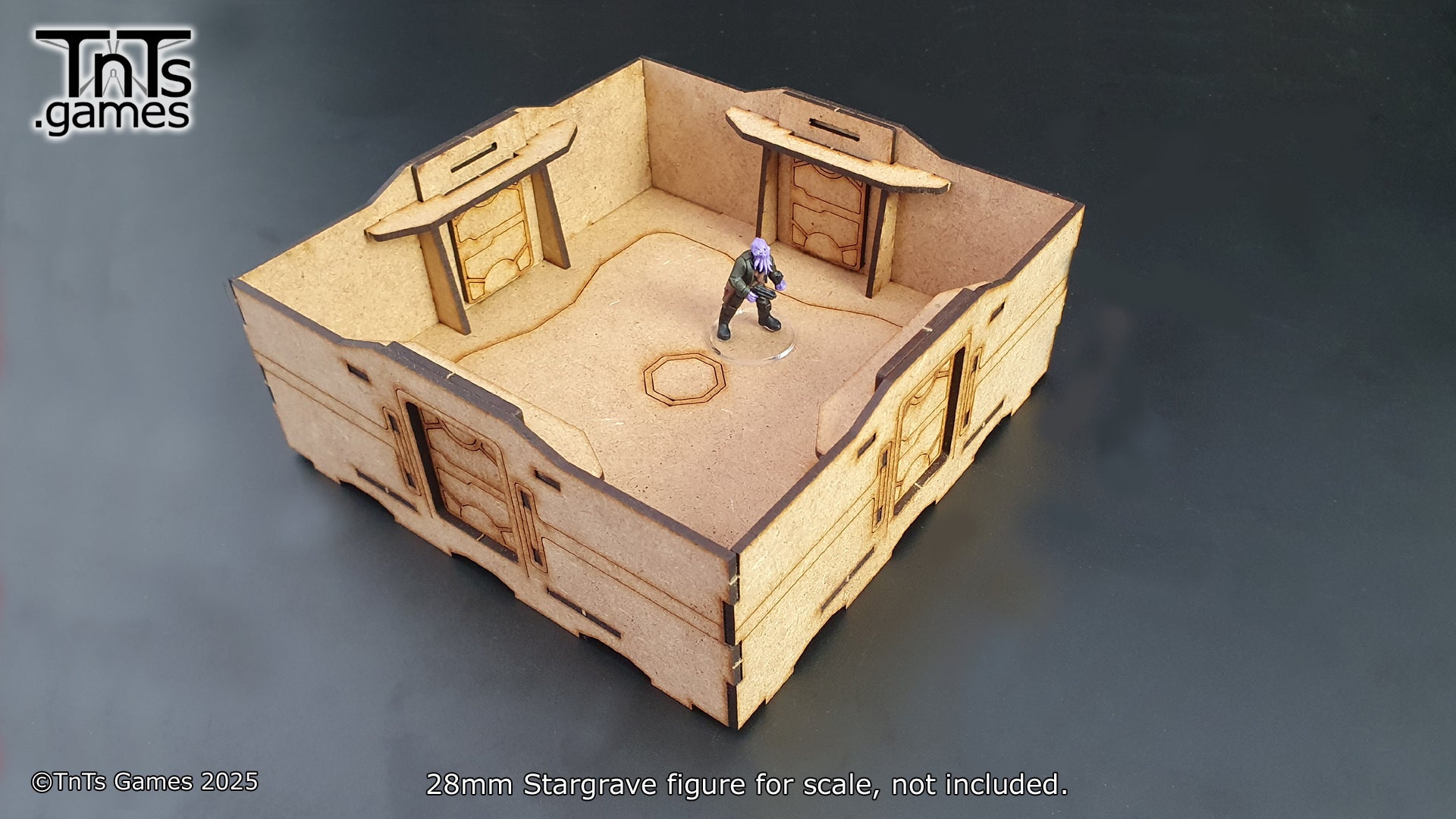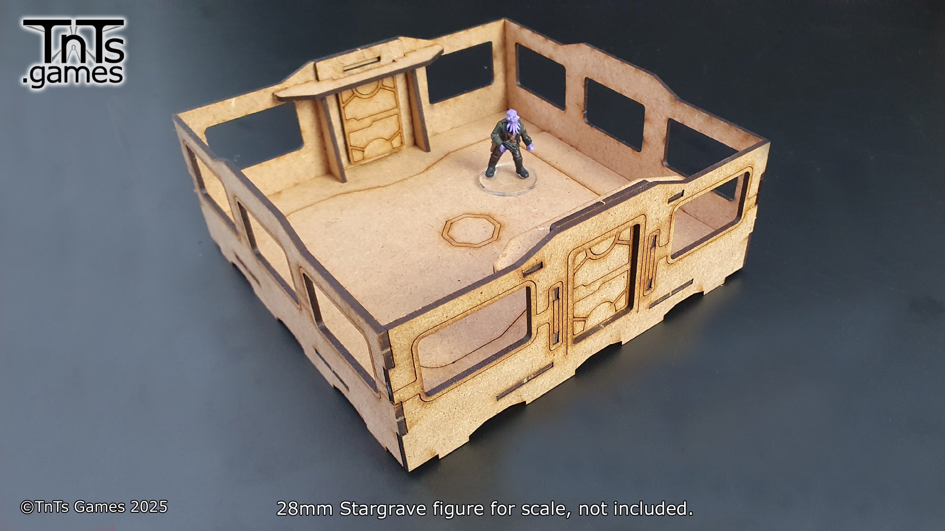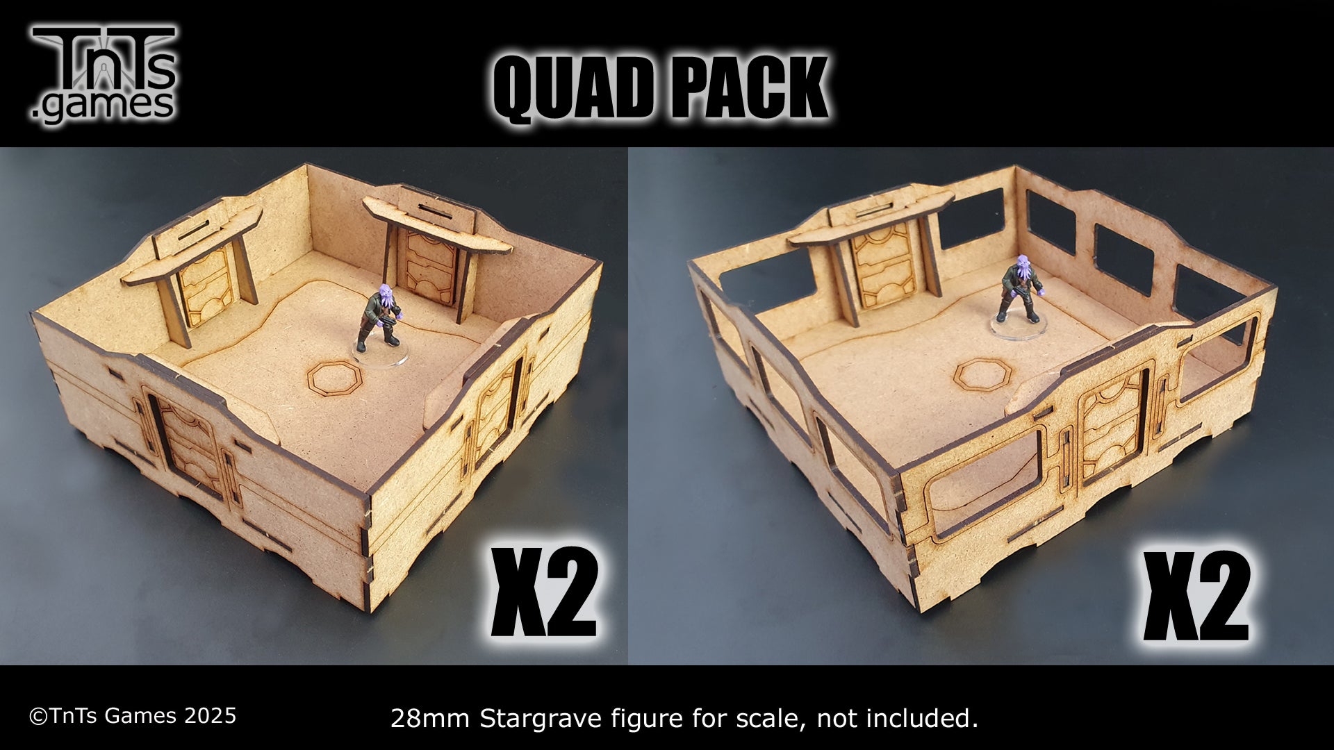This set contains 4 - 150mm modular room tiles. With the more generic tiles you can swap the walls around to create additional variation. Allowing you to mix and match your walls, windows and doors between sets.