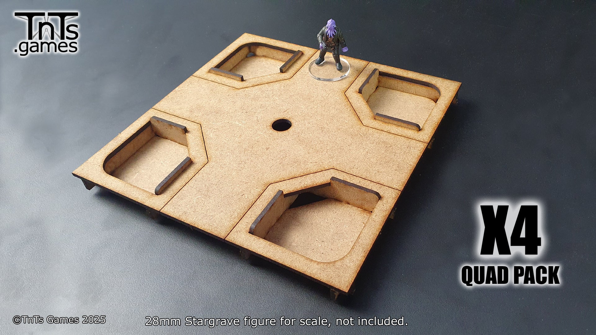 This set contains 4 - 150mm modular room tiles. With the more generic tiles you can swap the walls around to create additional variation. Allowing you to mix and match your walls, windows and doors between sets.