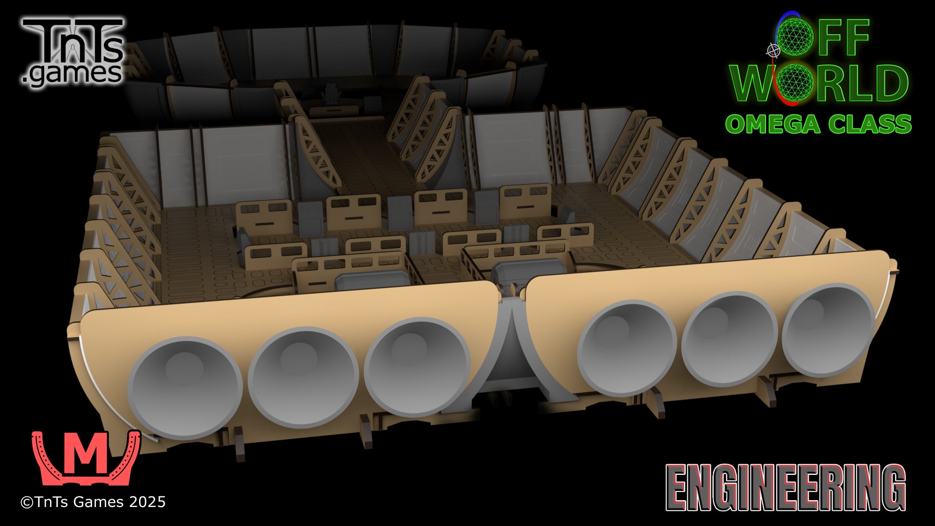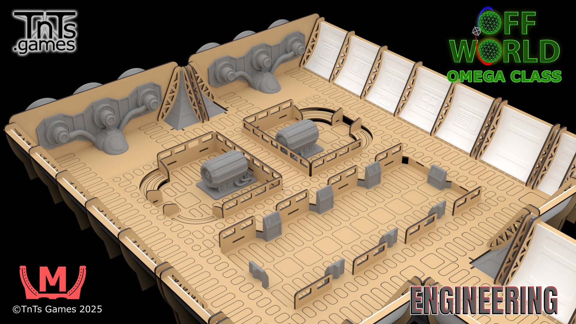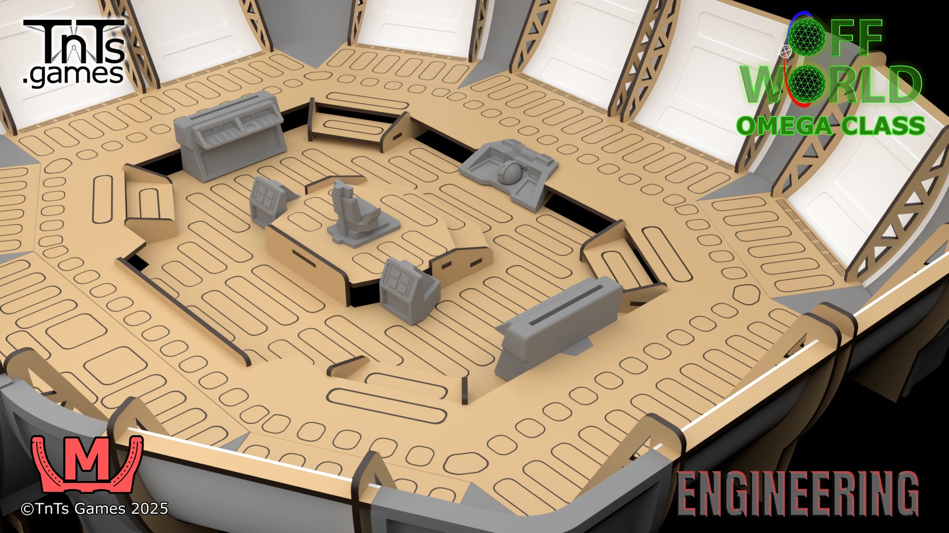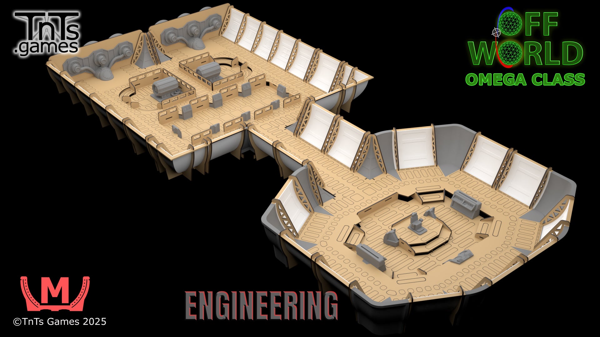 2x 300mm Tunnels 4x 150mm Tunnels 12x 75mm Tunnels 8x inner corners 4x outer corners 1 x Omega bridge kit 4x 30deg wedges 4x 60deg wedges 1x Room A Comms 1x Room B Generators 1x Room C Teleport 2x rear triple engines