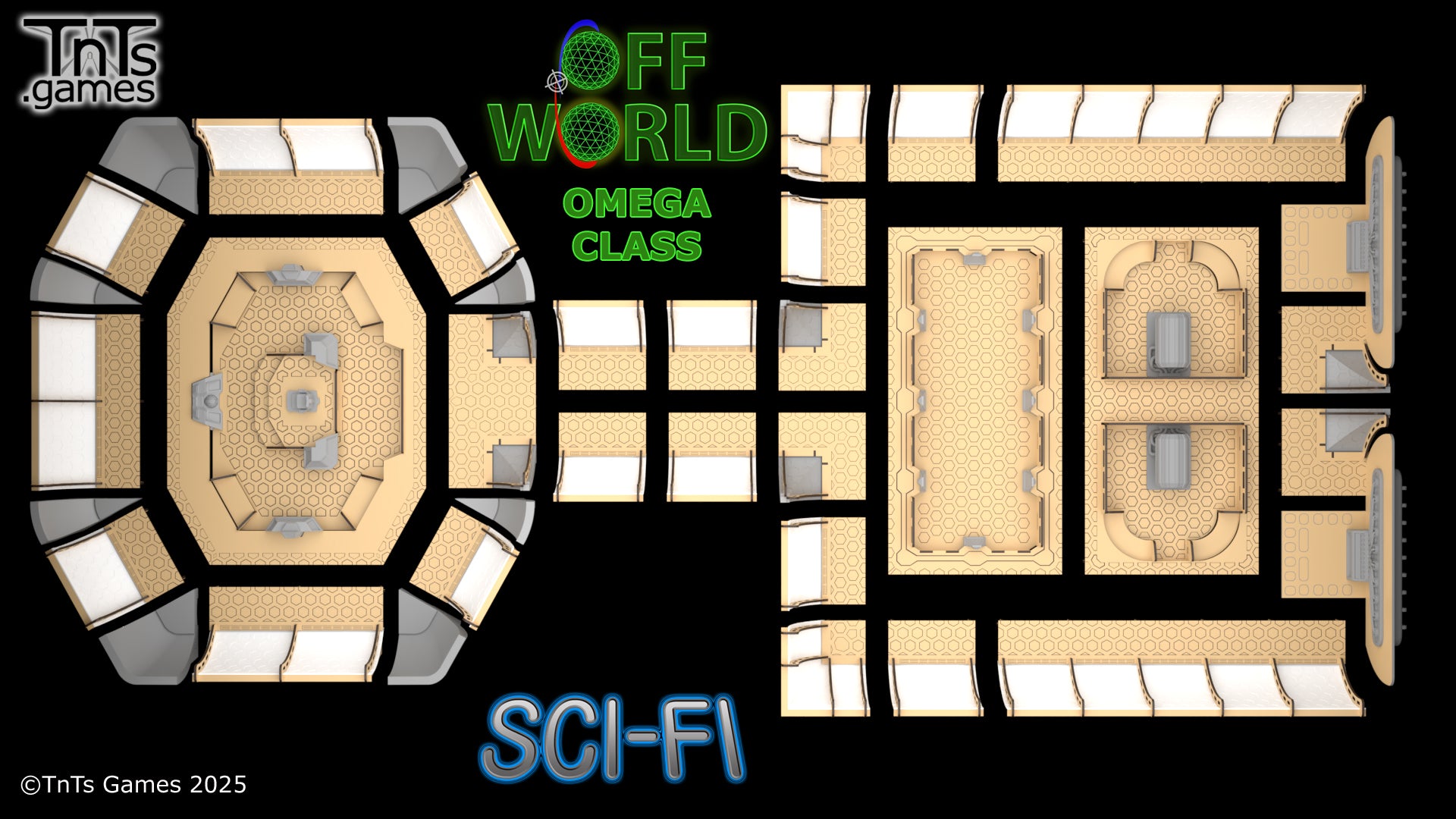 2x 300mm Tunnels 4x 150mm Tunnels 12x 75mm Tunnels 8x inner corners 4x outer corners 1 x Omega bridge kit 4x 30deg wedges 4x 60deg wedges 1x Room A Comms 1x Room B Generators 1x Room C Teleport 2x rear triple engines